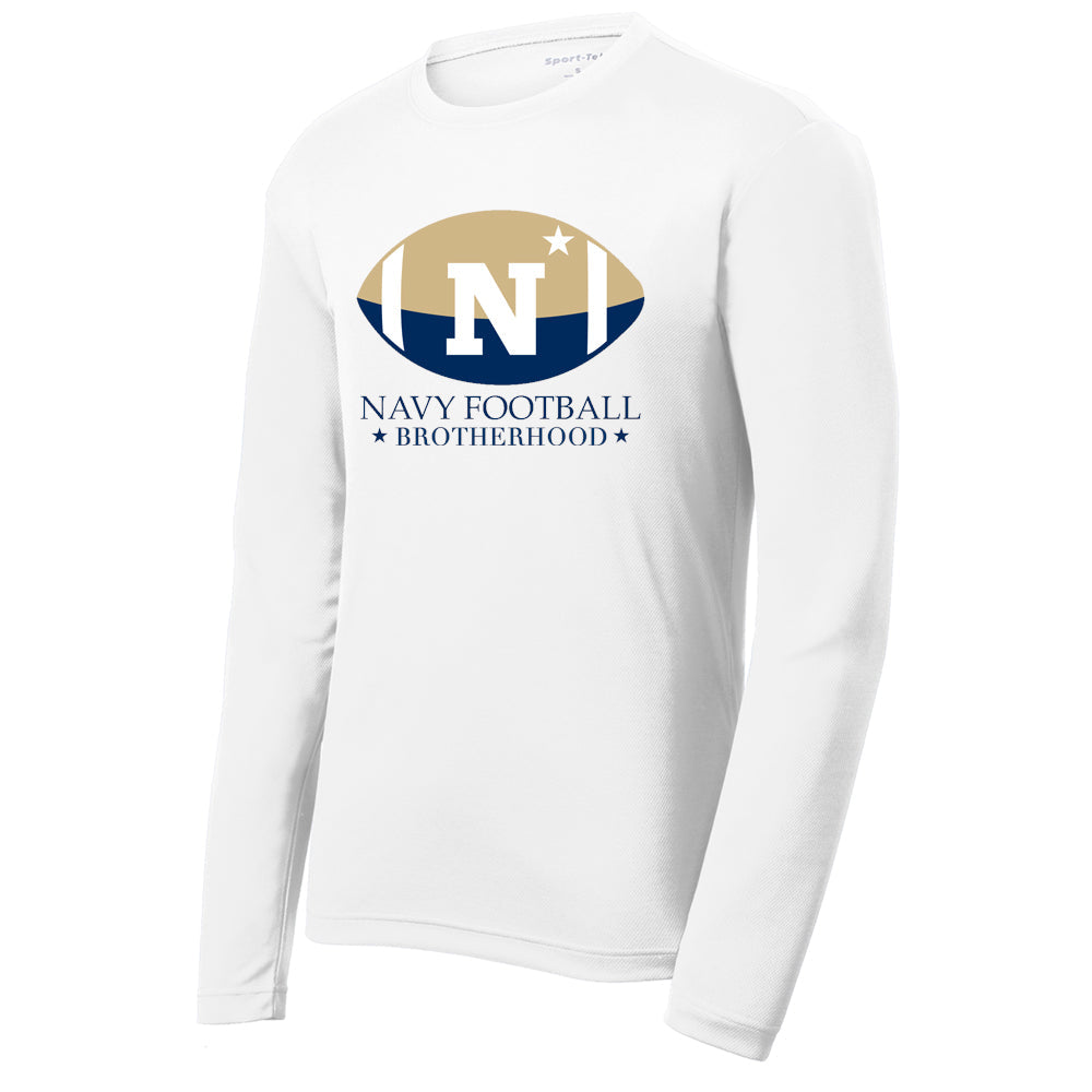 Navy Football Brotherhood Sport-Tek® PosiCharge® RacerMesh® Long Sleeve Tee (White)